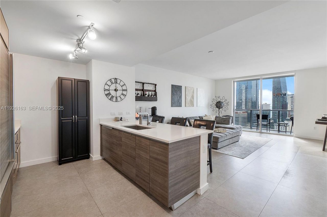 Ideally situated in the center of Brickell, this bright residence offers a generous one-bedroom, one-bathroom plus den layout. Floor-to-ceiling impact glass floods the home with natural light while framing sweeping views of the city skyline and Biscayne Bay. The kitchen and bathroom feature sleek European-style cabinetry and crisp white countertops, complemented by elegant tile flooring that continues onto the terrace. Residents enjoy an array of amenities, including two pools, a fitness center,...Ideally situated in the center of Brickell, this bright residence offers a generous one-bedroom, one-bathroom plus den layout. Floor-to-ceiling impact glass floods the home with natural light while framing sweeping views of the city skyline and Biscayne Bay. The kitchen and bathroom feature sleek European-style cabinetry and crisp white countertops, complemented by elegant tile flooring that continues onto the terrace. Residents enjoy an array of amenities, including two pools, a fitness center, spa, sauna, business center, club and game rooms, and a theater. Just moments from acclaimed dining, premium shopping, and vibrant entertainment, this coveted location delivers an effortless urban lifestyle. One assigned parking space included.