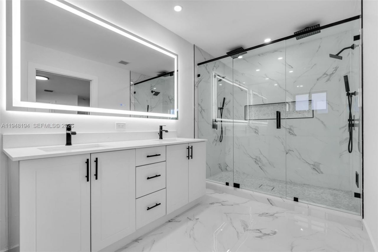 Exceptionally Remodeled 3K sq ft Corner 4/2.5 Home with 15 Side Gates & 50 Slab for Boats or Campers + 12 Rear Side Electric Gate. Hurricane Impact Windows & Doors. Spanish Clay Tile Roof. Waterfall Island Kitchen w/ Shaker Cabinets & New S/S Appliances. Two New High Efficiency AC Units & Tankless Water Heater. Master Bath with Dual Showers & Sinks + Sauna. Lighted Mirrors & Glass Doors. New Washer & Dryer. Zebra Blinds. Insulated Covered Terrace + Storage. Circular Stamp Concrete Driveway.