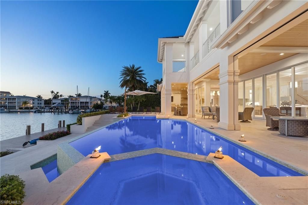 Sweeping southwestern bay views and direct, no-bridge access to the Gulf define the effortless coastal lifestyle at 2805 Leeward Lane. Expertly constructed by Coleman with longevity and quality in mind, the residence embodies a timeless architectural style—an elegant balance of relaxed coastal living and thoughtful, high-performance design. A grand entry through impressive mahogany double doors reveals an expansive great room, where walls of 10-foot glass sliders frame tranquil w...Sweeping southwestern bay views and direct, no-bridge access to the Gulf define the effortless coastal lifestyle at 2805 Leeward Lane. Expertly constructed by Coleman with longevity and quality in mind, the residence embodies a timeless architectural style—an elegant balance of relaxed coastal living and thoughtful, high-performance design. A grand entry through impressive mahogany double doors reveals an expansive great room, where walls of 10-foot glass sliders frame tranquil water vistas and invite natural light to pour in. At the heart of the home, a stunning custom Ruffino kitchen serves as both a showpiece and gathering space, appointed with dual Cristallo quartzite islands, a Wolf gas range, a dedicated butler’s pantry, and uninterrupted views across the bay. Spanning approximately 100 feet of pristine water frontage, the outdoor living experience is equally compelling. Designed for both entertaining and everyday enjoyment, the grounds feature an expansive Trex dock with a 30,000-pound lift, a submersible kayak launch, a built-in firepit, and electric roll-down screens and shutters. The summer kitchen and covered dining area—complete with a fireplace—offer a seamless transition from indoors to out, creating the perfect setting to take in Naples’ breathtaking sunsets. The primary suite provides a serene retreat, with a light-filled bath designed for relaxation, while four additional en-suite bedrooms ensure comfort and privacy for family and guests alike. Enhanced by modern conveniences including a whole-home generator, elevator, Lutron lighting, and Control4 automation, this exceptional waterfront residence is ideally located in the heart of the Moorings—offering a rare opportunity to experience refined coastal living at its finest.
