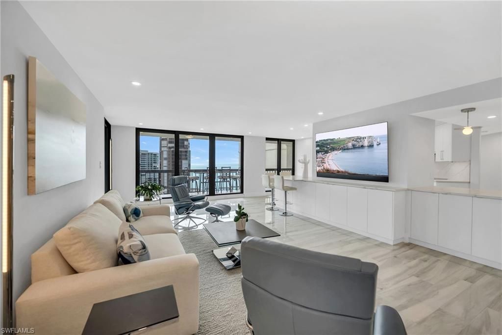 Enjoy southwestern Gulf views, southeastern Bay views, and spectacular sunsets from this beautifully renovated residence in the prestigious Esplanade Club. Ideally positioned on a high floor, this furnished condominium offers a light, coastal-elegant interior designed for both comfort and style. The recently updated residence features impact-resistant glass throughout, providing peace of mind along with improved energy efficiency and sound reduction. Thoughtfully renovated with clean lines and t...Enjoy southwestern Gulf views, southeastern Bay views, and spectacular sunsets from this beautifully renovated residence in the prestigious Esplanade Club. Ideally positioned on a high floor, this furnished condominium offers a light, coastal-elegant interior designed for both comfort and style. The recently updated residence features impact-resistant glass throughout, providing peace of mind along with improved energy efficiency and sound reduction. Thoughtfully renovated with clean lines and timeless finishes, the open living and dining areas flow seamlessly to the private balcony, where expansive Gulf and Bay vistas create the perfect backdrop for entertaining or relaxing at day’s end. The well-appointed kitchen and baths complement the refined coastal aesthetic, while the primary suite and guest bedroom offer serene water views of their own, plus generous closet space. Esplanade Club is a sought-after, amenity-rich beachfront community on Gulf Shore Boulevard North, offering residents a resort-style lifestyle with direct beach access, pool and spa, outdoor fireplace and bar, observation deck, fitness center, social room, tennis, pickleball, 24-hour security with doorman, and covered parking. Located just across from Venetian Village, as well as the world-class shopping, dining, and cultural offerings of downtown Naples, Waterside Shops, Mercato and Artis Naples. A rare opportunity to own a move-in-ready, furnished Gulf-view residence in one of Naples’ most desirable beachfront addresses.