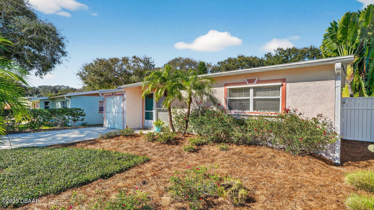 There is a brand new roof on this meticulously maintained beachside gem! This home is conveniently located just a short distance from restaurants, groceries and shopping. Take a short stroll to the beach to enjoy an evening walk, sunbathing and swimming in the beautiful ocean. Inside, discover easy to care for laminated flooring that flows throughout, with tile accents in both bathrooms. The sunny picture window allows natural light to flood the spacious living area, which seamlessly opens into ...There is a brand new roof on this meticulously maintained beachside gem! This home is conveniently located just a short distance from restaurants, groceries and shopping. Take a short stroll to the beach to enjoy an evening walk, sunbathing and swimming in the beautiful ocean. Inside, discover easy to care for laminated flooring that flows throughout, with tile accents in both bathrooms. The sunny picture window allows natural light to flood the spacious living area, which seamlessly opens into a large dining room and kitchen. The kitchen, fully remodeled in 2009, features granite countertops, tile backsplash, updated sink and faucet, along with a natural gas range. Entertaining is a breeze with a breakfast bar and generous dining area. Interior laundry room makes laundry day a little easier! The primary bedroom is privately located, away from the guest bedrooms. Primary bathroom was remodeled in 2020 with new flooring, a sleek vanity, and new ceiling fan. Added bonus is a relaxing garden tub. The guest bedrooms share a well-appointed bathroom with a tiled standing shower and frosted glass doors. The guest bathroom has original painted accents created by local artist Stephanie Hill. Custom closet organizers throughout the home maximize storage space. The true highlight of this property is the stunning mostly Florida friendly and Florida native landscaping in both the front and back yards that attract a myriad of birds and butterflies. The front yard features robellini palms, white fountain grass, muhly grass, drift and knockout roses, and jasmine minima ground cover. In the back, enjoy evenings on the 13x26 screened porch and more artwork by Stephanie Hill with an ocean-themed mural painted by Stephanie Hill. The backyard is a true tropical oasis complete with bamboo, Jatropha bushes, Crepe Myrtle, and crotons. The drought-resistant ground cover requires little maintenance, leaving you more time to relax and enjoy the hot tub. And there's a beautiful travelers palm along the east side of the house giving some shade and privacy. The modern sculpture adds a zen-like touch to the serene setting. A 12x16 double-door shed provides ample storage for lawn equipment, beach toys, or holiday decorations. Plus, the home includes a new tankless water heater, installed in 2023, for added efficiency, as well as a 2022 HVAC system with natural gas heating. Ask for a complete list of improvements and maintenance.
