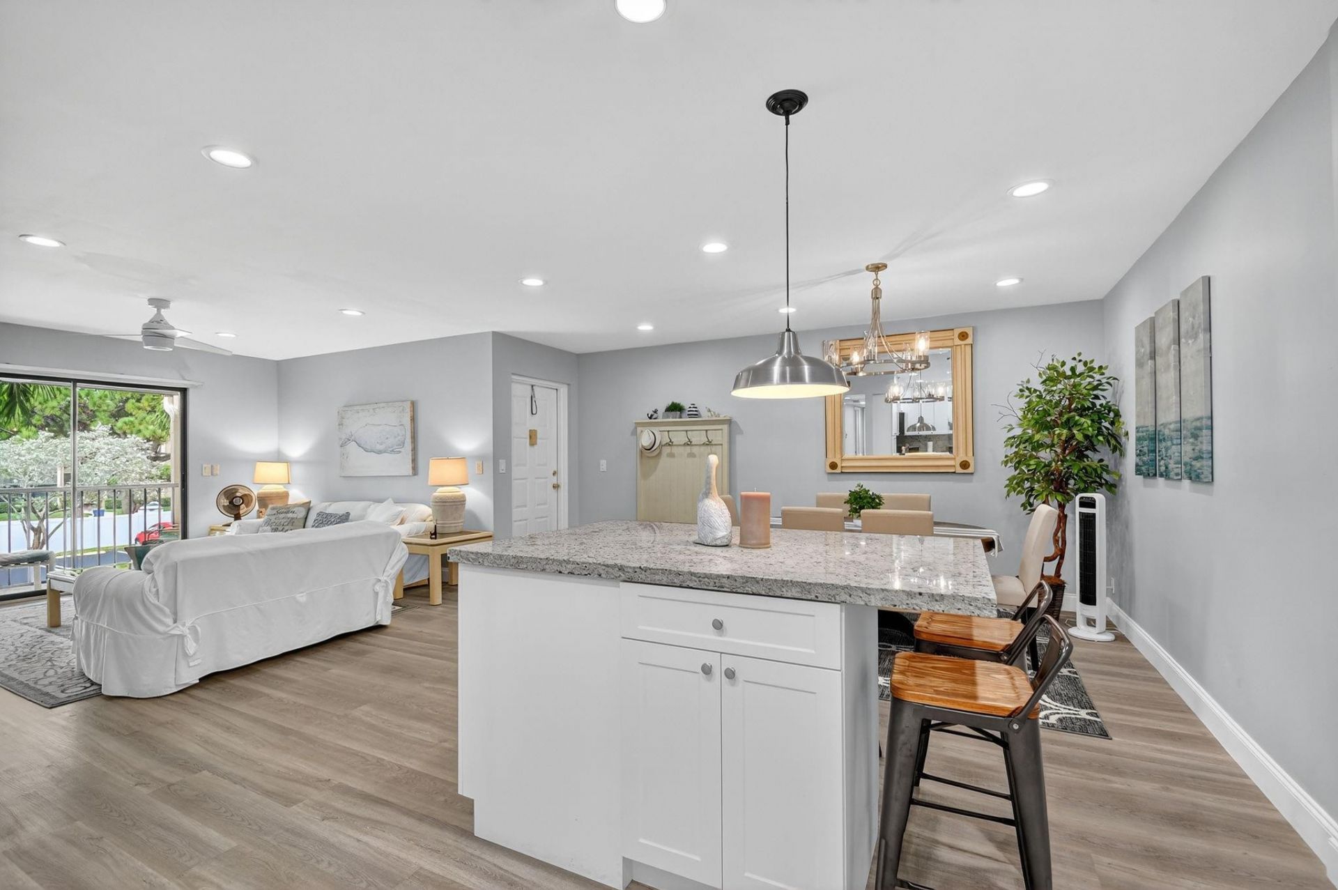 Get the Beach Vibe in this newly remodeled, and seasonally used 3BR, 2BA home in the 55+ community of Pine Ridge North Village IV. Updates include impact windows throughout and roll down shutters on the screened balcony, 2 gorgeous bathrooms, AC 2024, and roof 2024. Luxury vinyl floors in a beautiful, wood-grain complement the beach decor. The kitchen has been opened and remodeled with granite counters, white cabinets, and an island with a wine cooler, and more storage. The flow from the ki...Get the Beach Vibe in this newly remodeled, and seasonally used 3BR, 2BA home in the 55+ community of Pine Ridge North Village IV. Updates include impact windows throughout and roll down shutters on the screened balcony, 2 gorgeous bathrooms, AC 2024, and roof 2024. Luxury vinyl floors in a beautiful, wood-grain complement the beach decor. The kitchen has been opened and remodeled with granite counters, white cabinets, and an island with a wine cooler, and more storage. The flow from the kitchen, dining room, and family room create an easy space for entertaining. The 3rd bedroom could be an office/den with double doors to the family room. The corner, primary bedroom has beautiful, natural light and a walk-in closet. More storage in the laundry room. OK TO RENT
